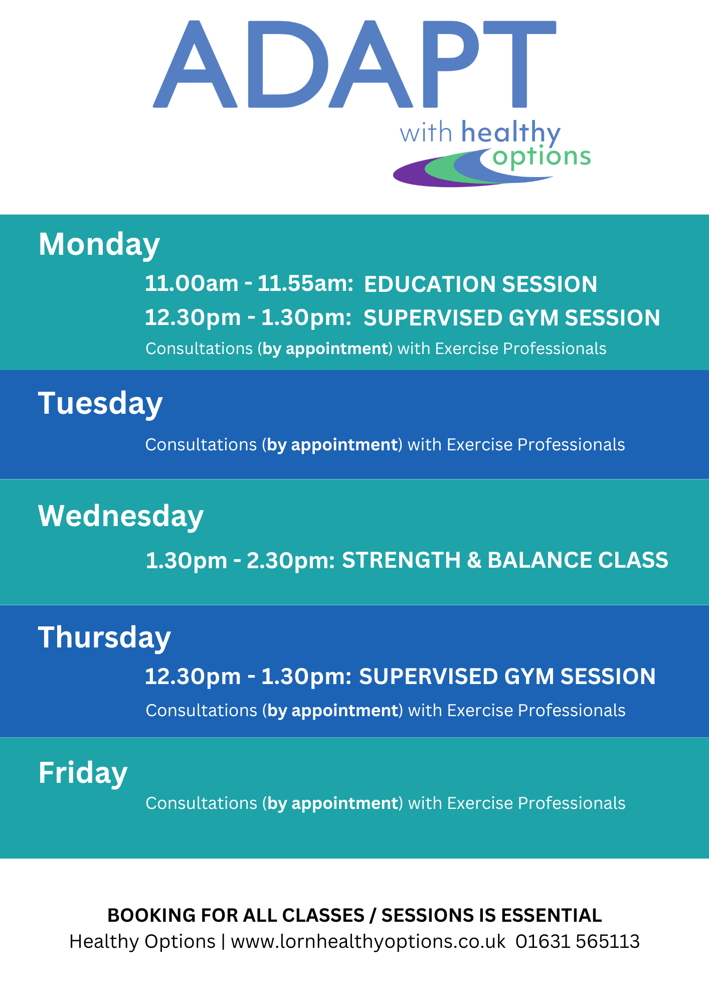 ADAPT is accessed via GP or Health Professional referral. Healthy Options works alongside clients to ensure that the right support is offered. Lasting 12 weeks, the programme consists of a supported self-management programme delivered by senior members of our team.We ask for