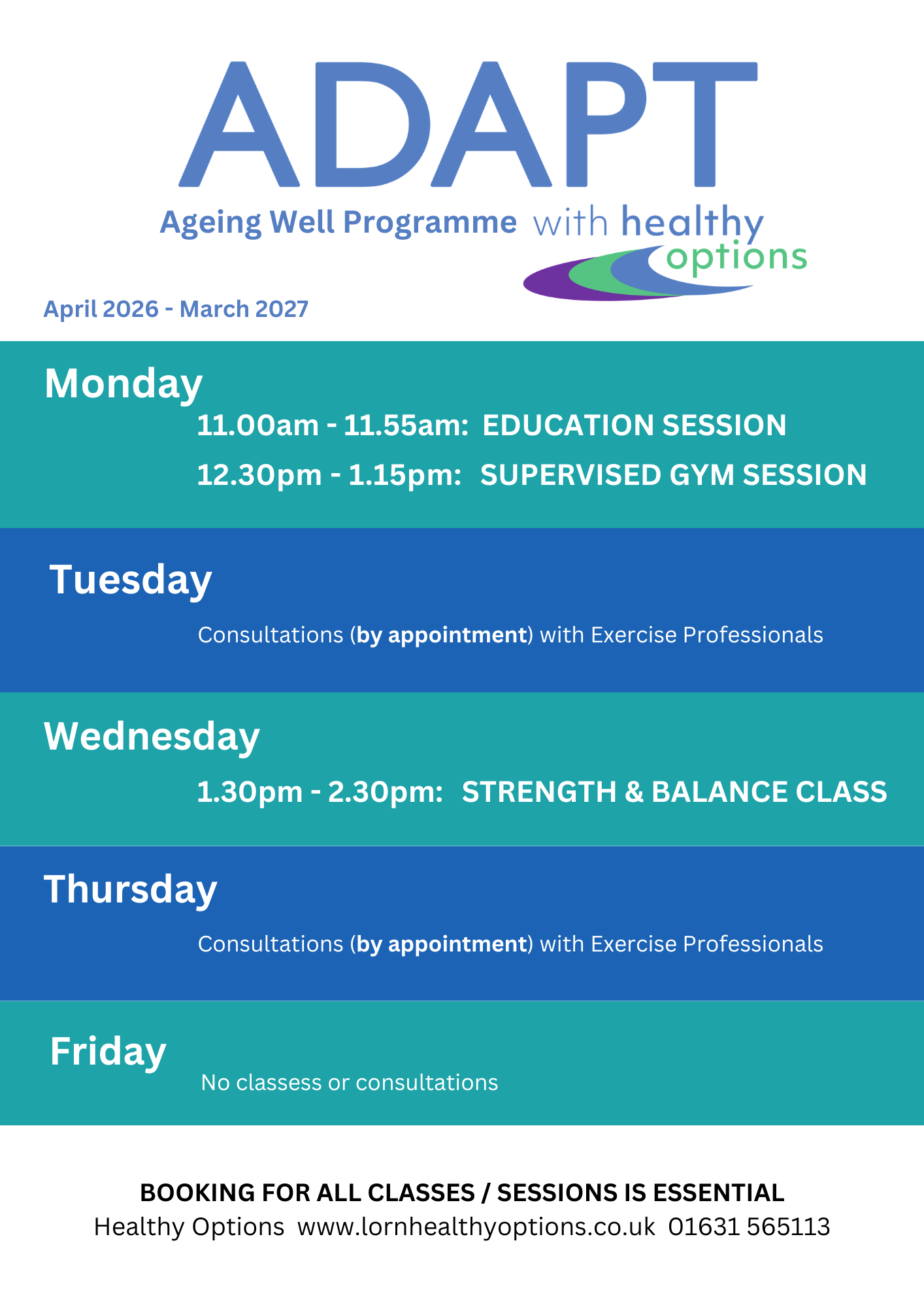 ADAPT is a 12-week Ageing Well programme that helps people improve strength, balance and confidence so they can stay active, steady and independent.
